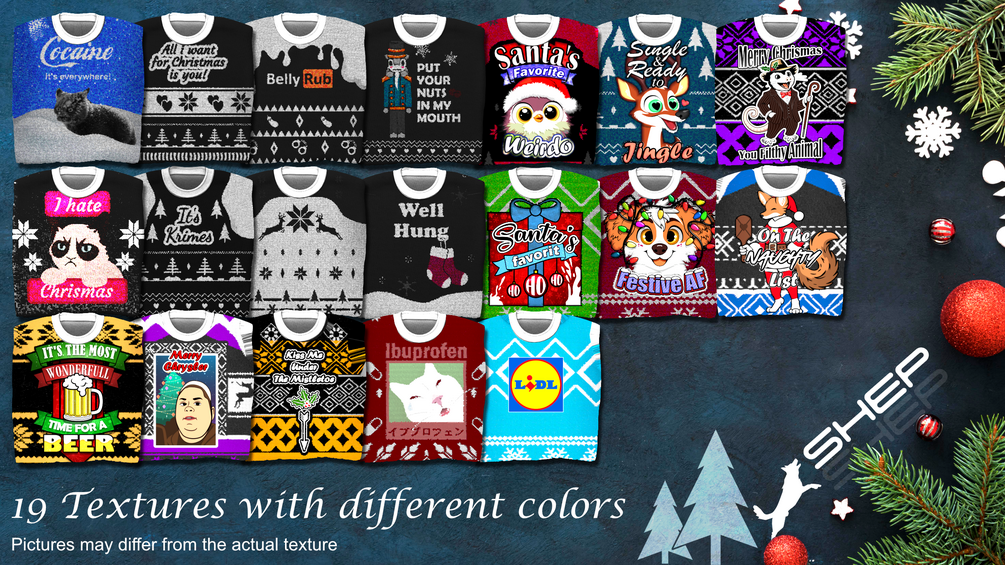 The sweater was made 22 different avatars and has all the Blendshapes you need.